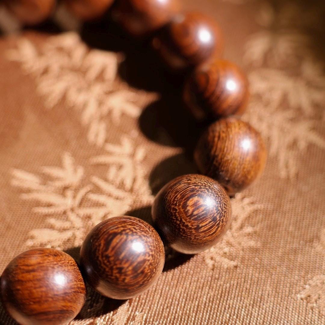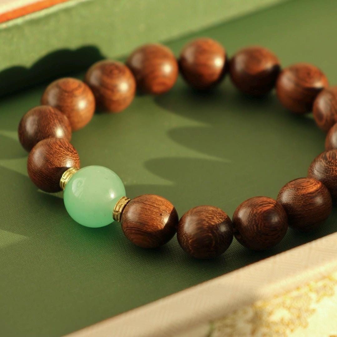 12mm zingana wood with Du long jade bracelet 金丝檀木独龙玉非洲翠手串