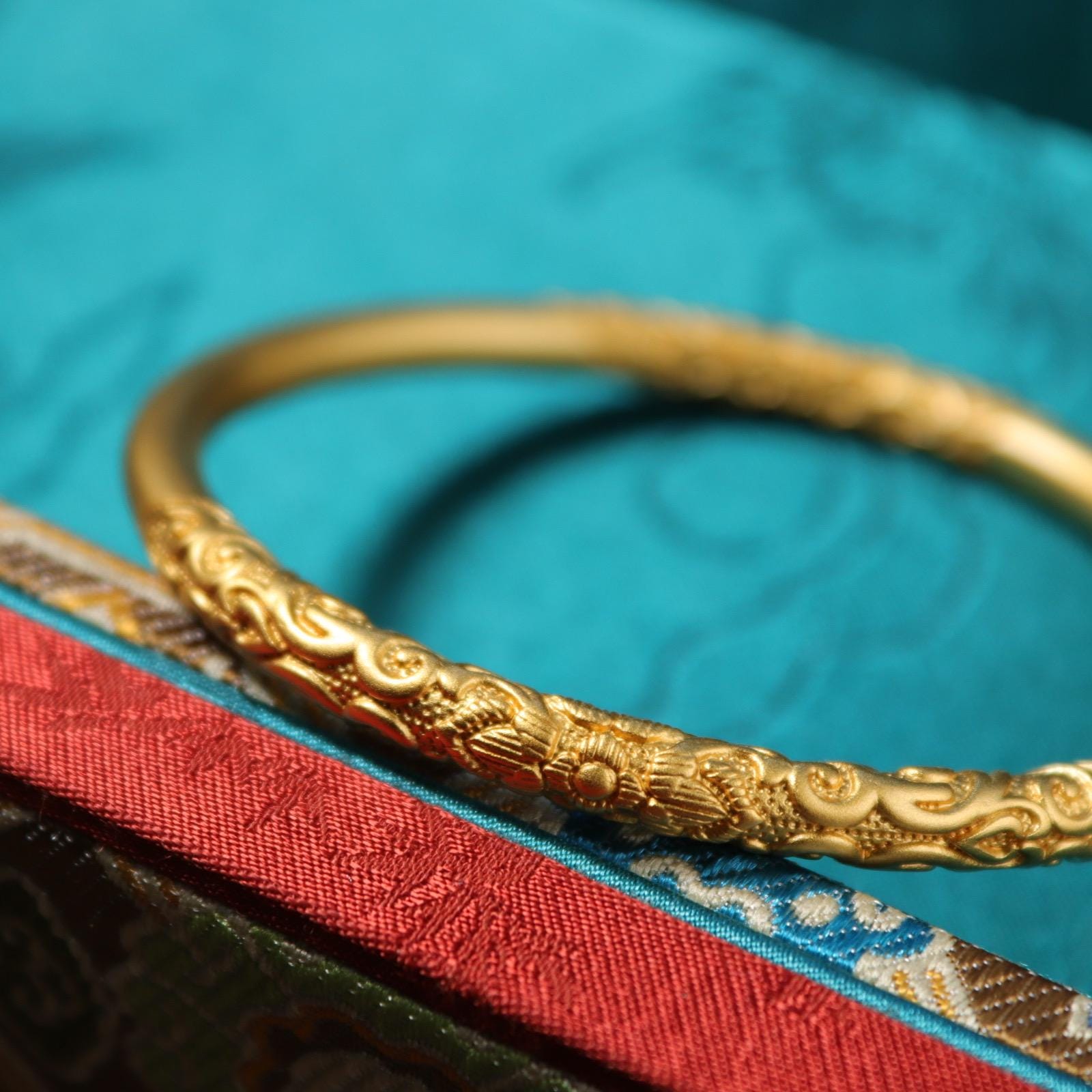 Chinese style scroll art 24k gold bangle. Chinese Wedding jewelry