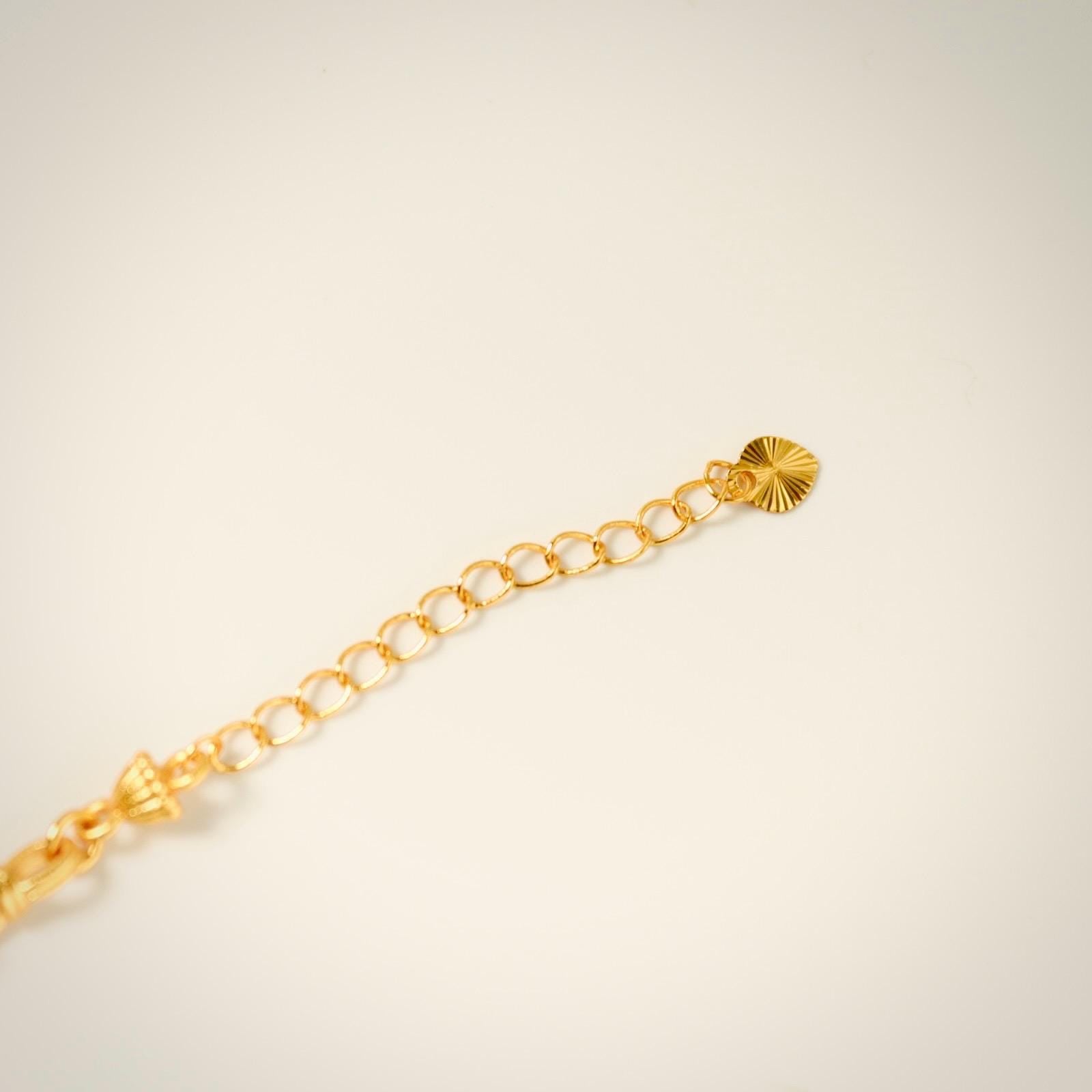 24K gold plated brass bracelet. Chinese Wedding jewelry. 5x thickly plated plated to secure color for longer wear. extension chain enables flexible fitting