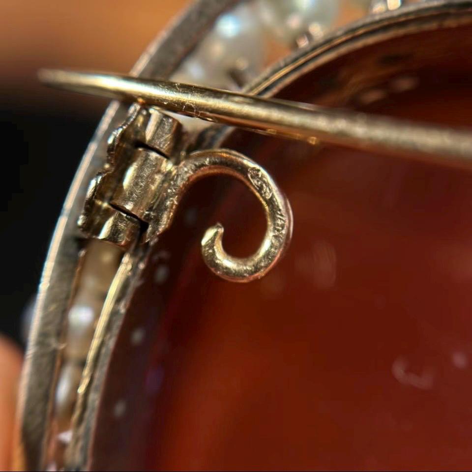 • this cameo is carved on agate featuring a noble woman, likely a French queen