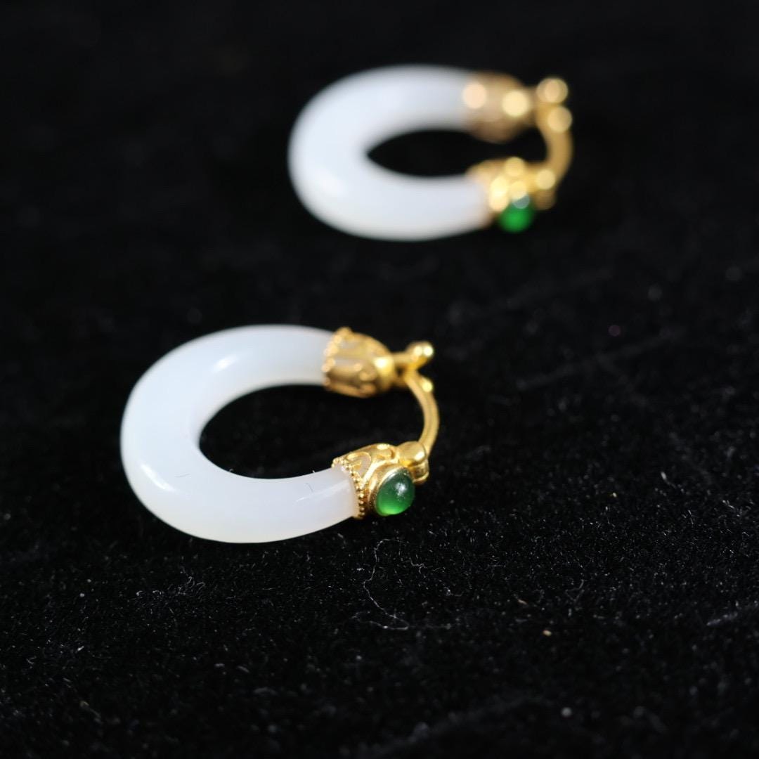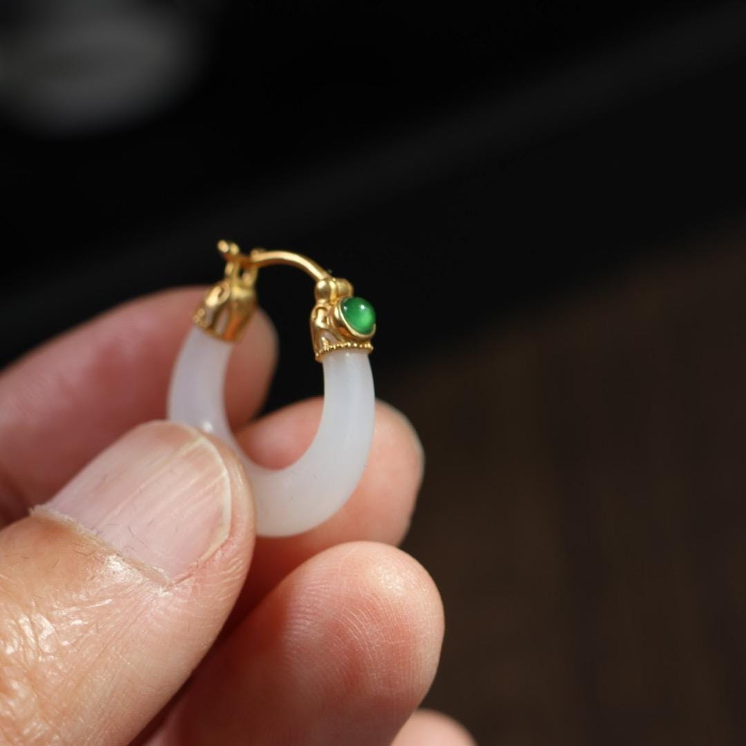 antique style white nephrite loop statement earrings.