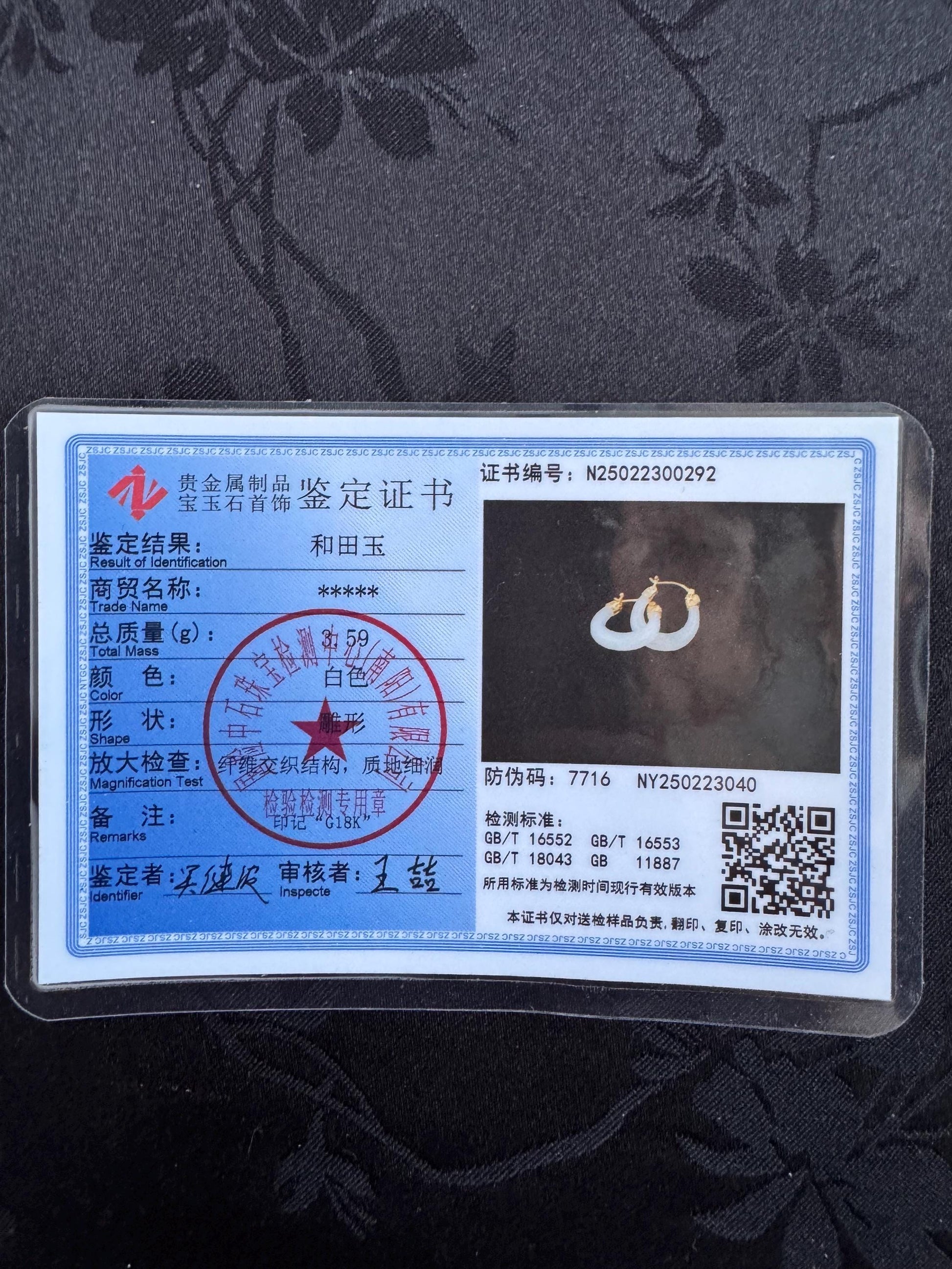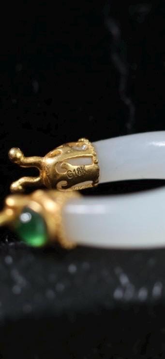 Certified Antique style white nephrite dragon and solid gold earrings 18k