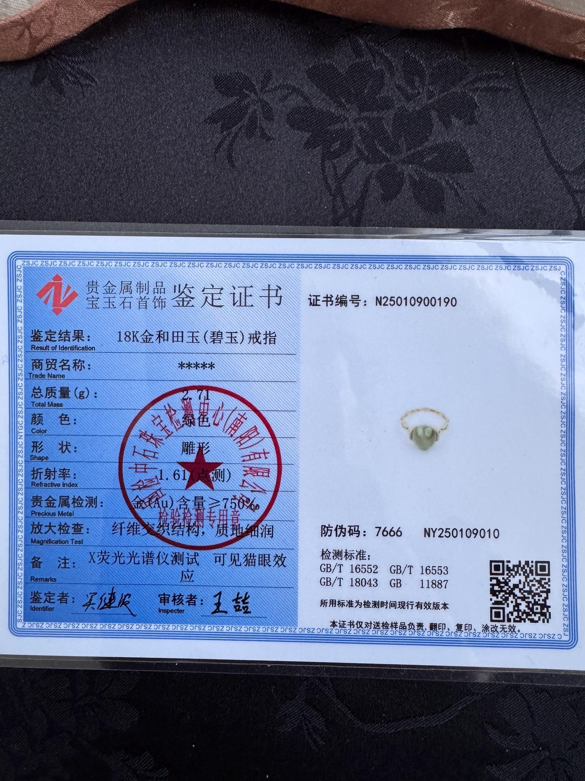 Certified Cat Eye Jade Ring: 18k Gold Bamboo Band, Diamond Accents, US Size 5.5