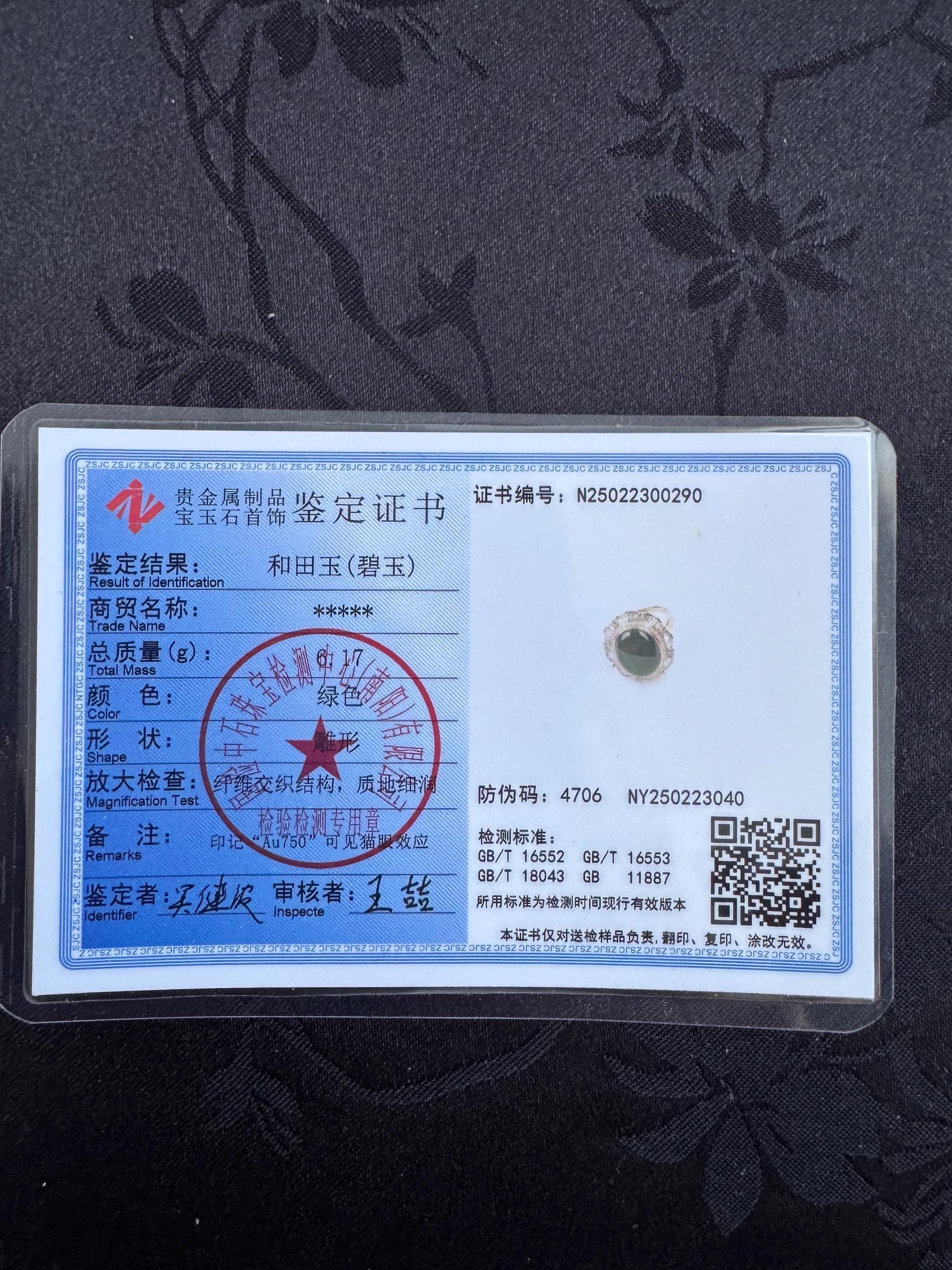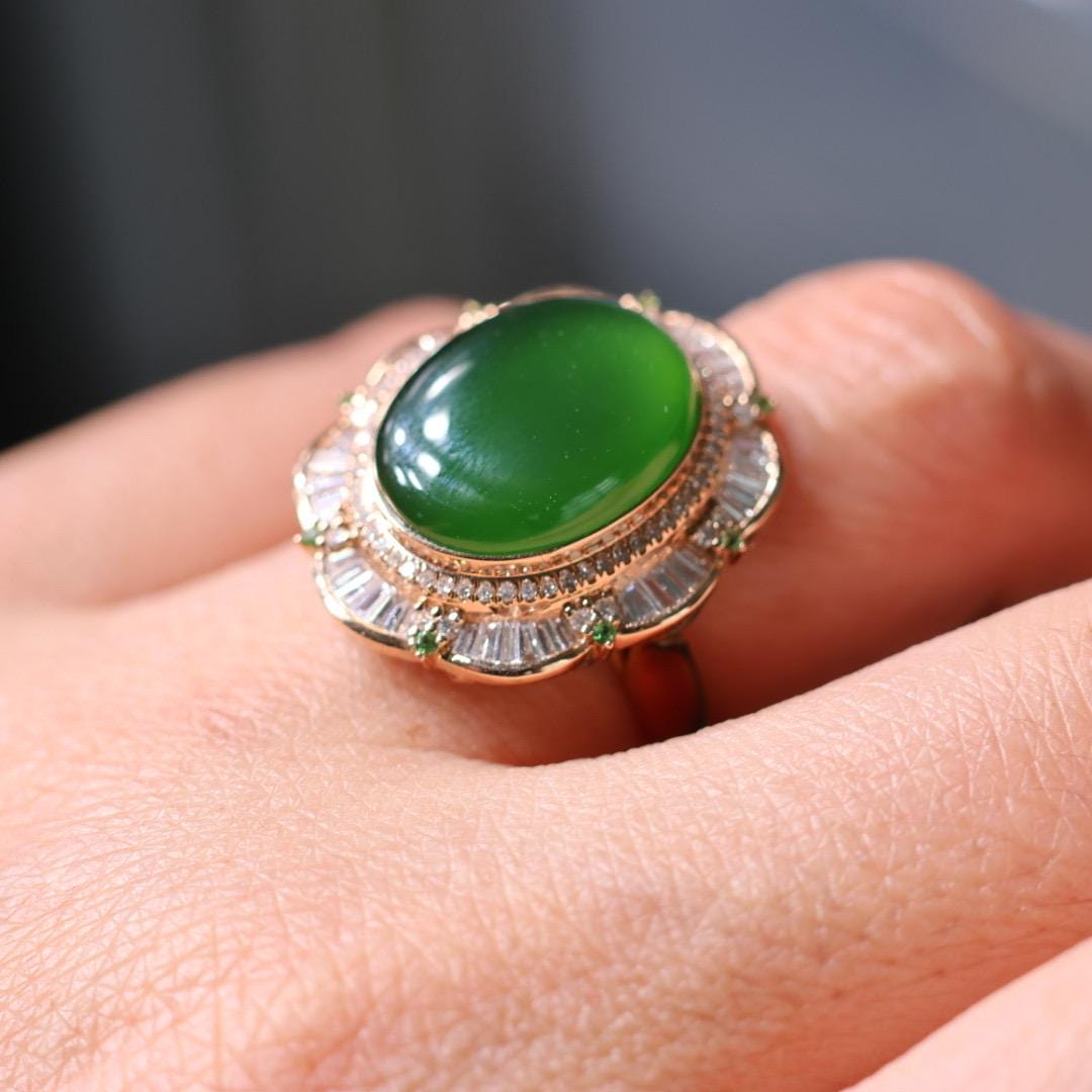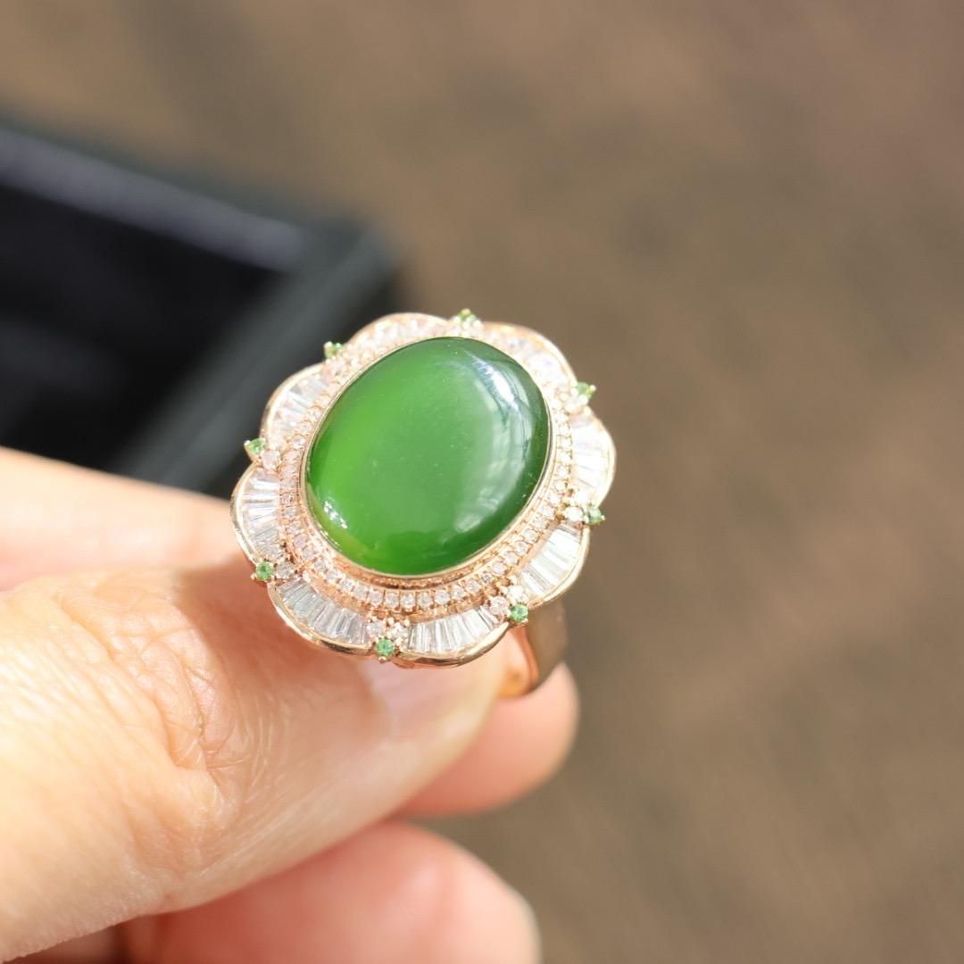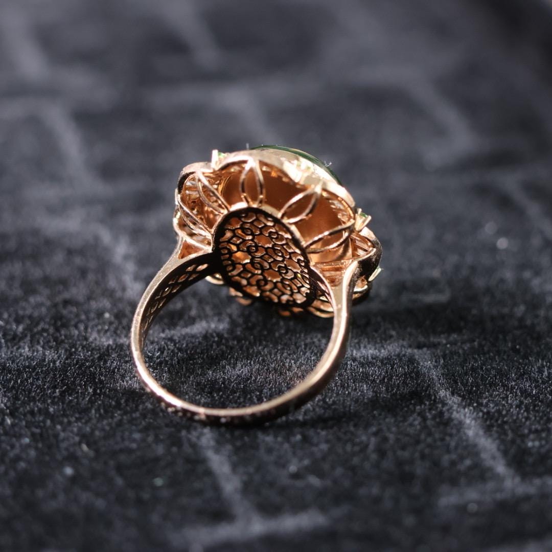Certified Green nephrite Jade Ring: 18k Gold Band,US Size 5.5