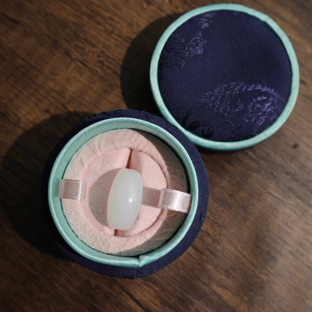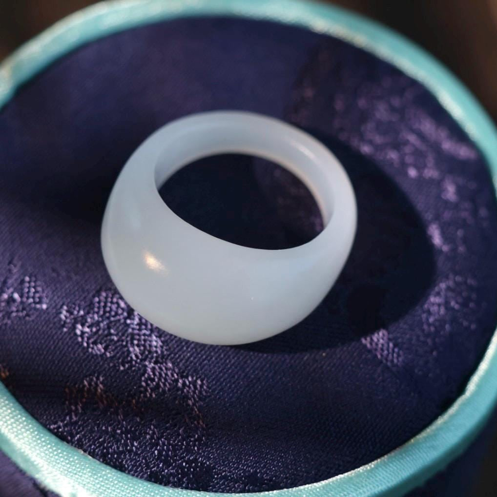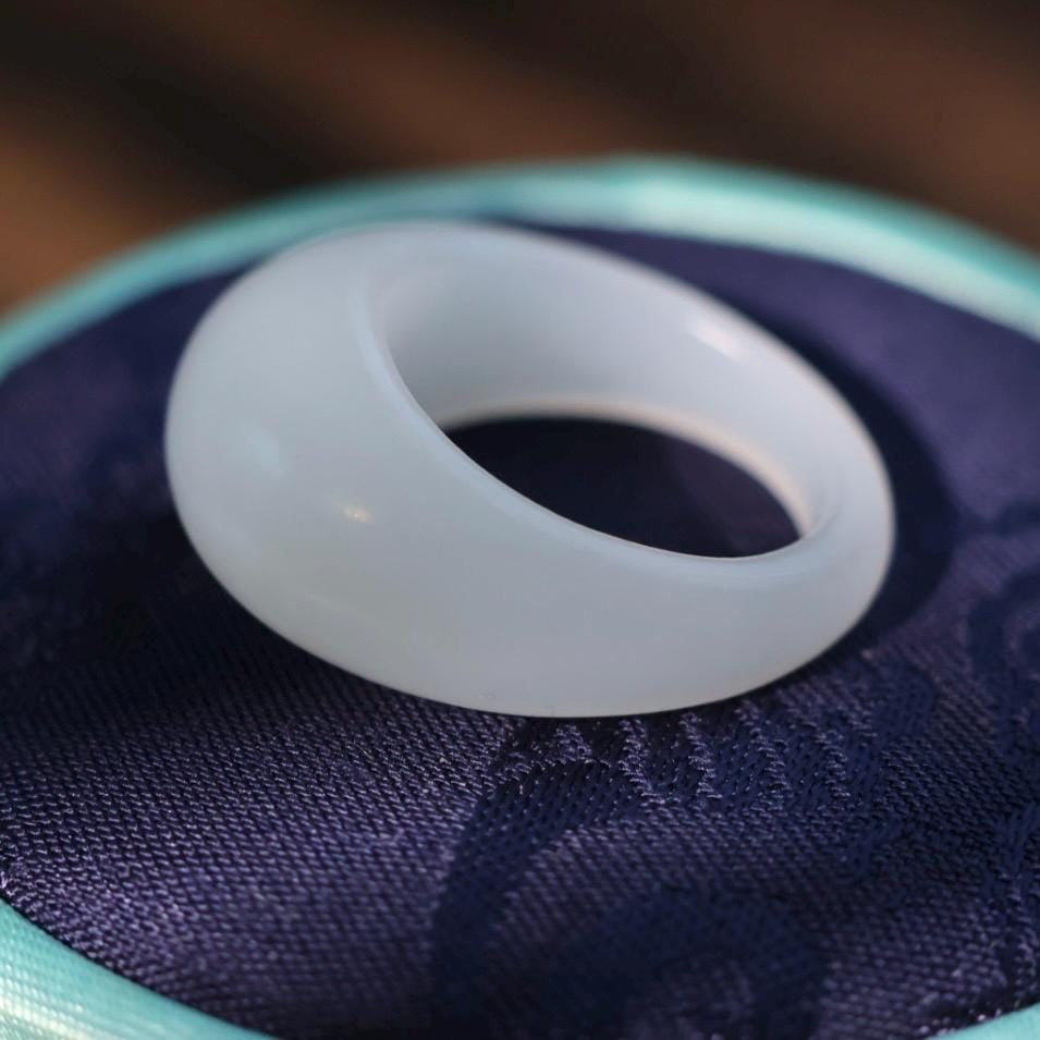 Premium white jade ring, coming with beautiful Chinese silk fully cushioned customized ring box