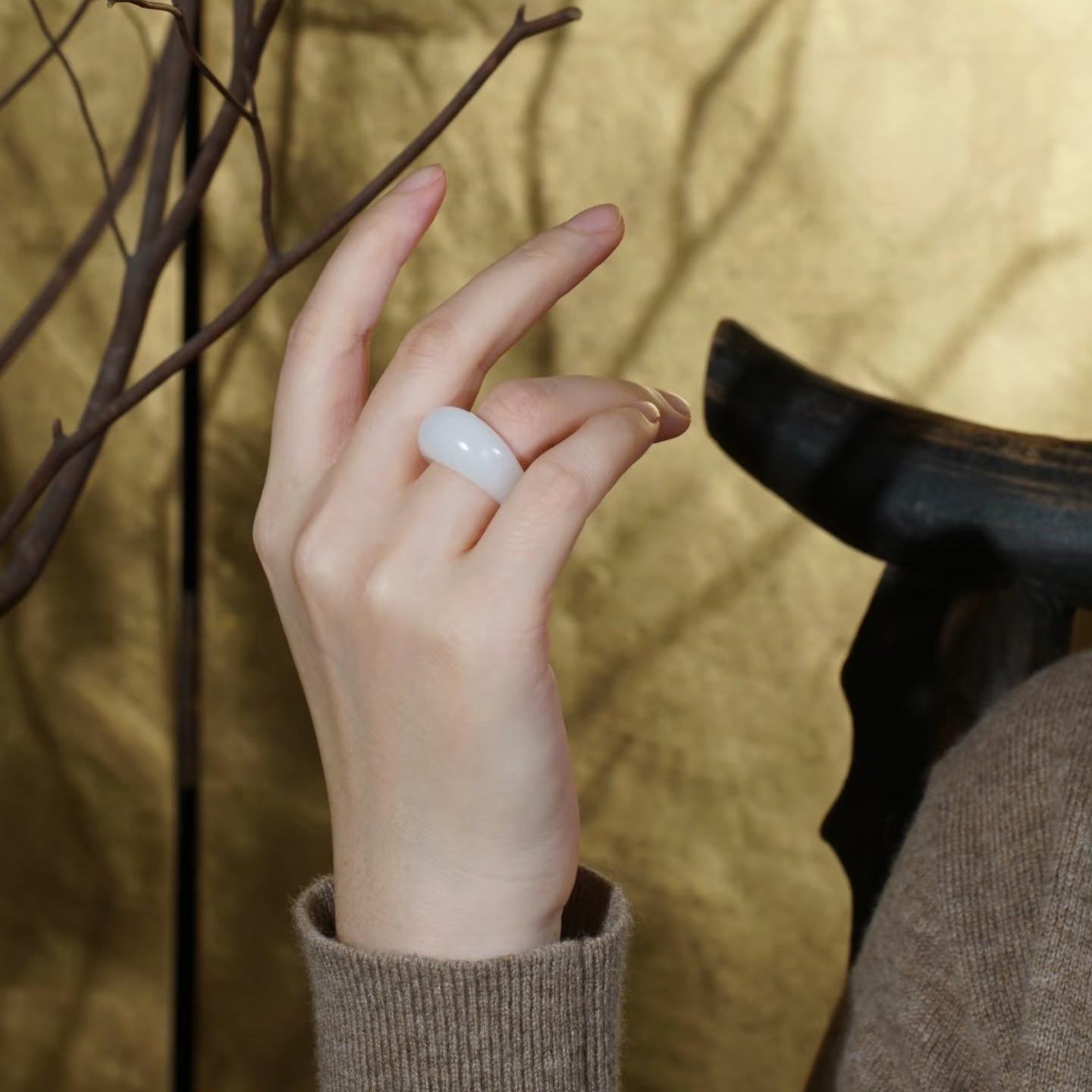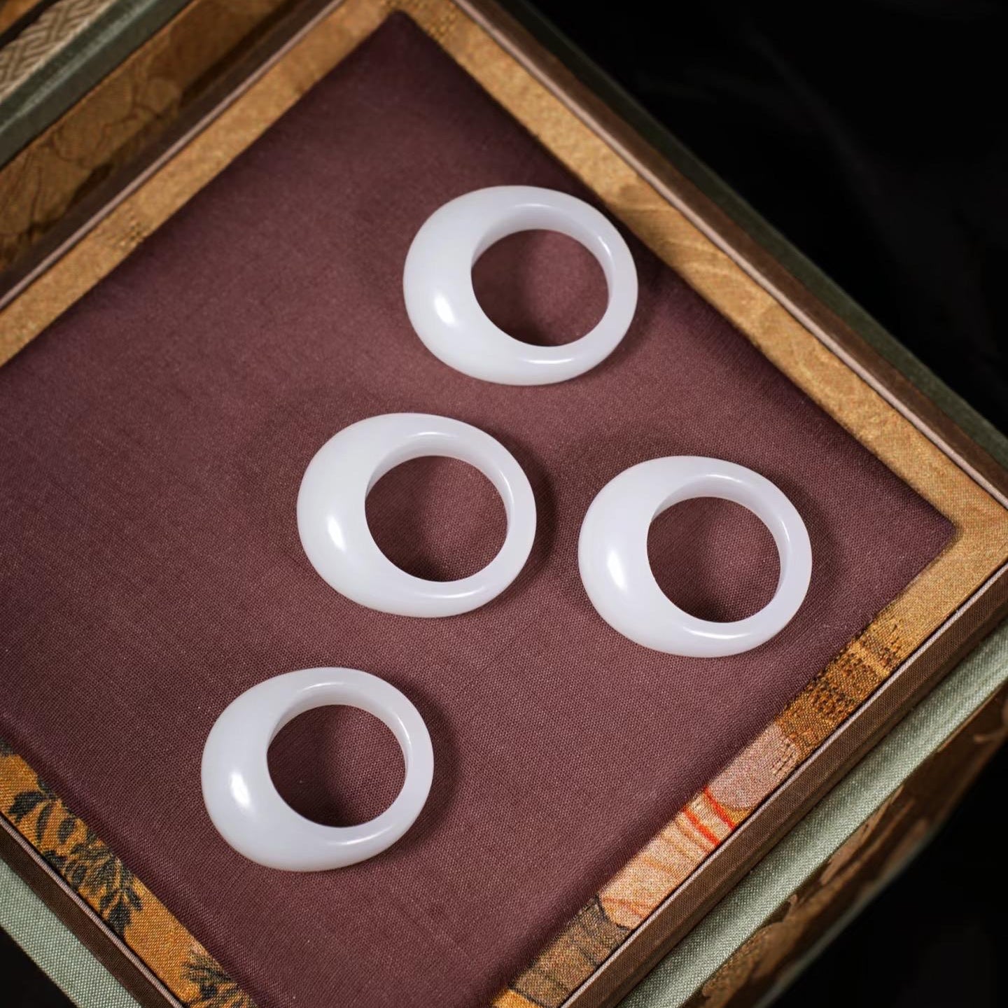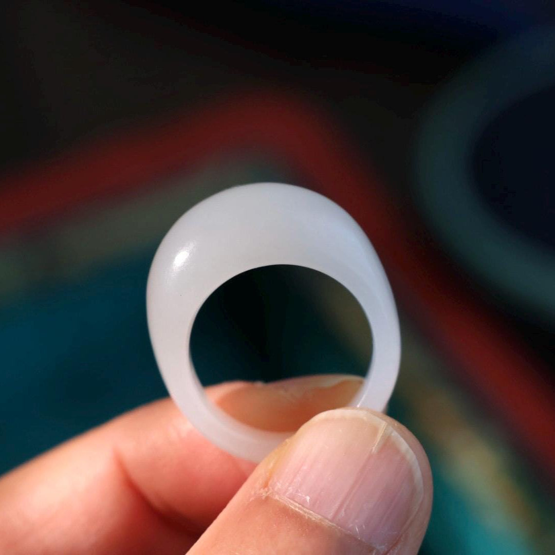 Premium white jade ring, coming with beautiful Chinese silk fully cushioned customized ring box