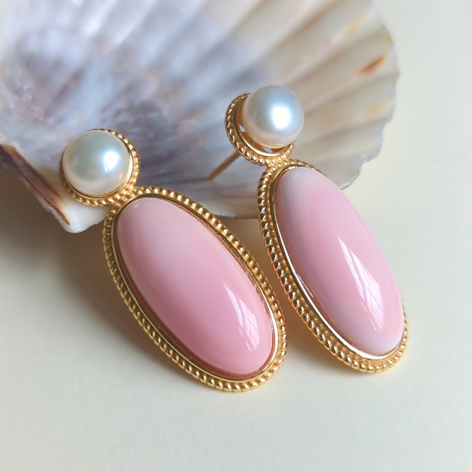 Pearl & Queen Conch Statement Earrings: Gold Plated S925 Silver