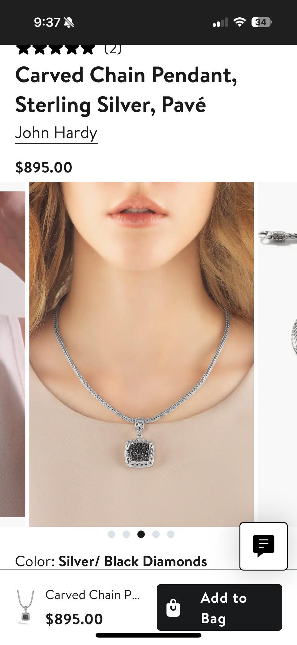 pre-owned John Hardy Carved Chain Pendant, Sterling Silver, Pavé