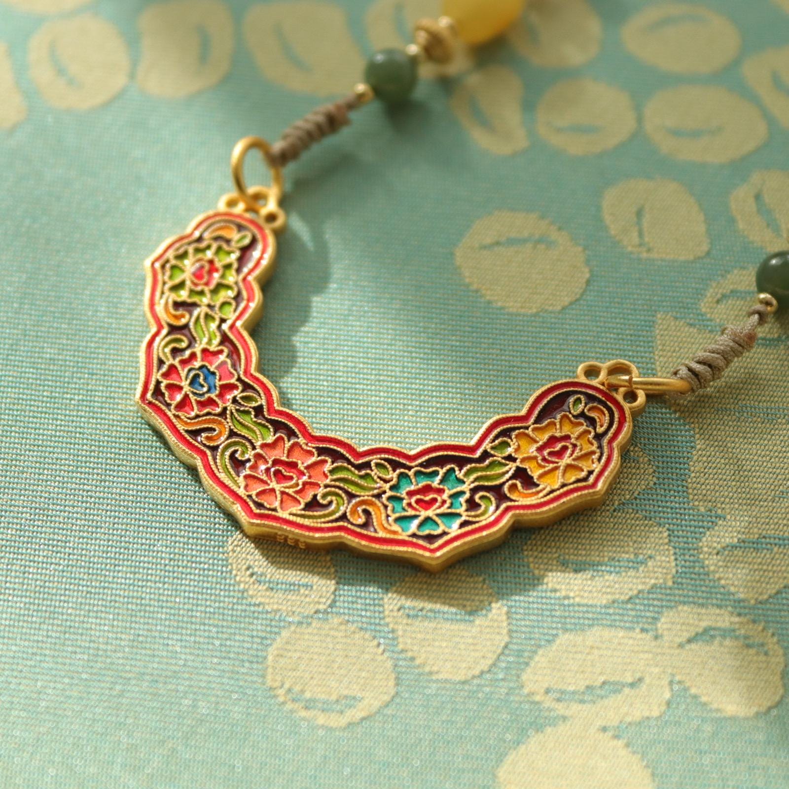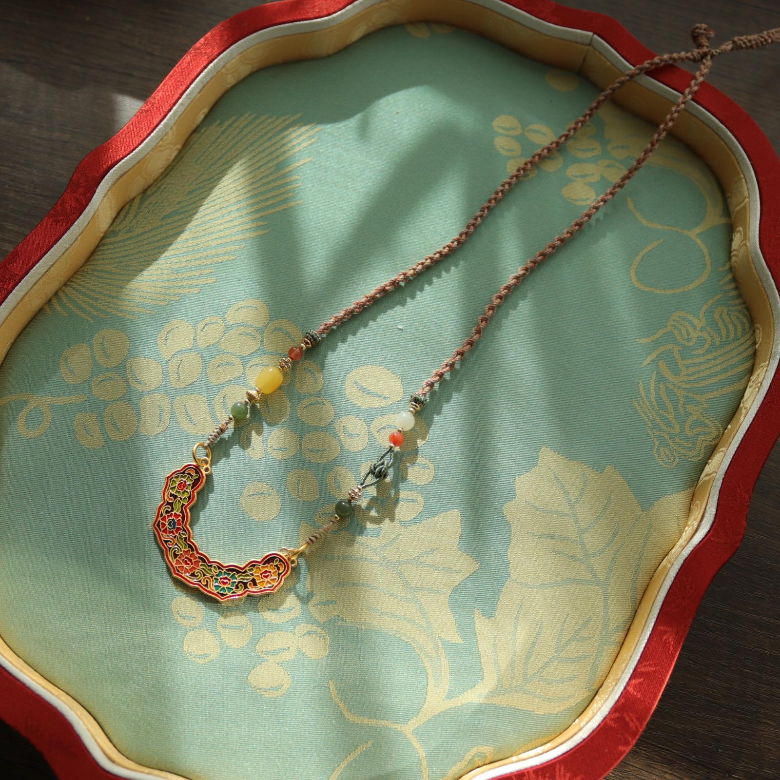 All metal is made of 18k gold 5x plated brass, crafted with high quality traditional Chinese enamel designs. The lock can be worn both sides, coming with beautiful cord necklace is designed with all kinds of gold plated decorative beads.