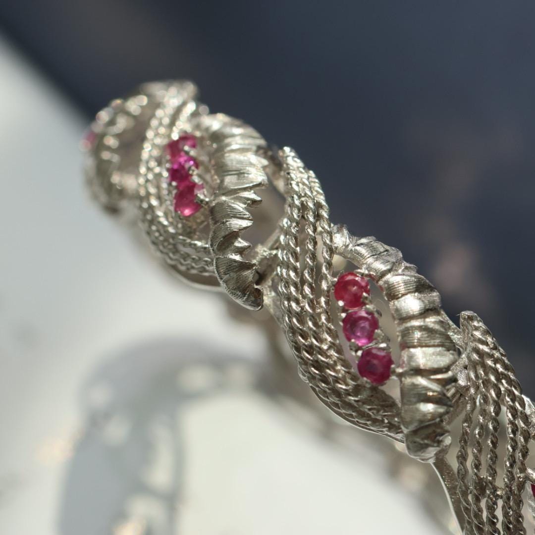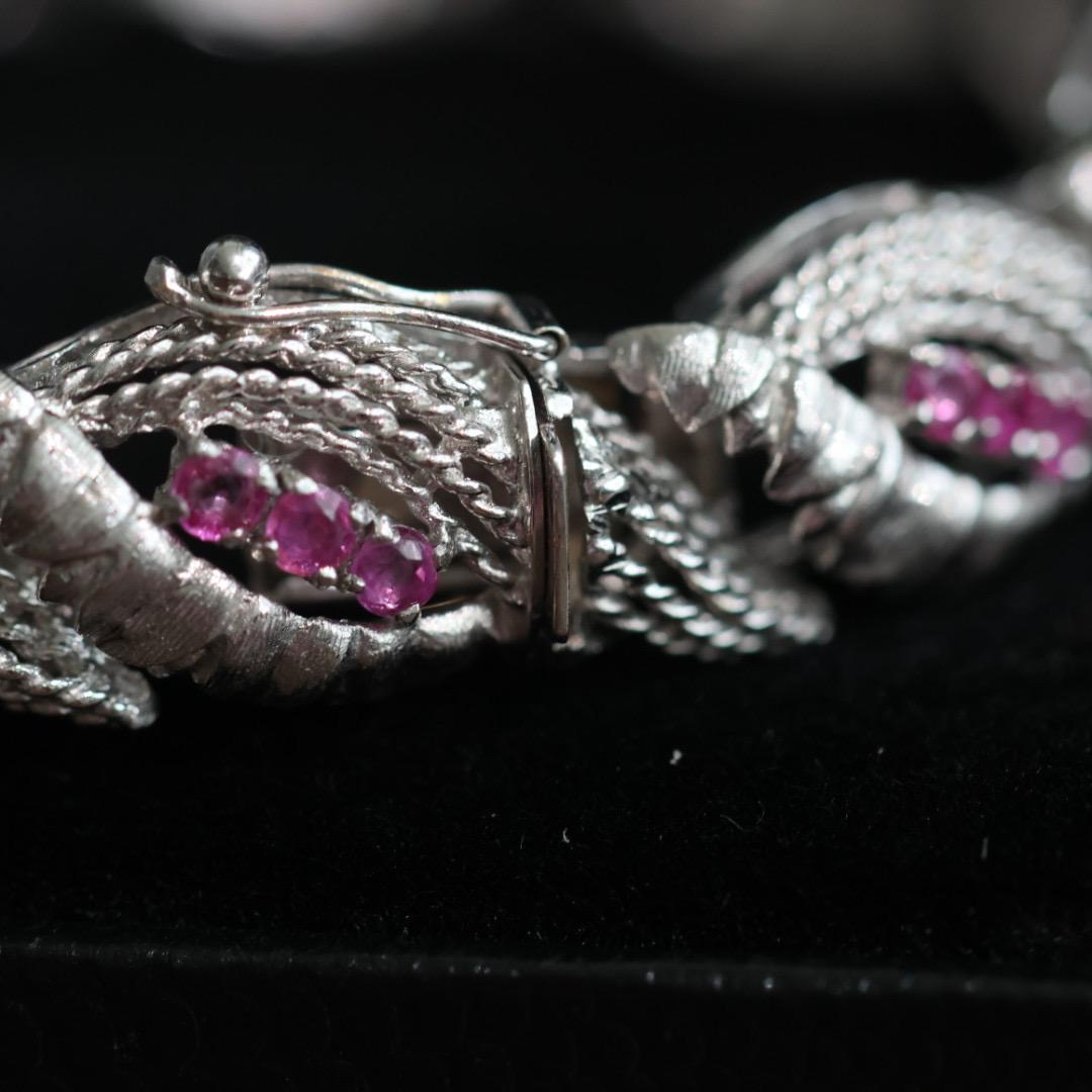 Vintage Italy Unoaerre 18K white gold and ruby bracelet 7 inch